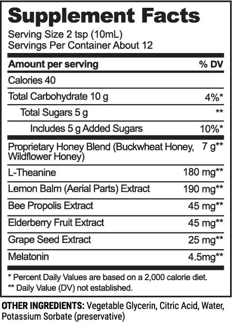 Get the rest you need to feel like yourself again with this easy-to-take, immune-supporting blend featuring ingredients like soothing buckwheat honey, elderberry, and calming melatonin.