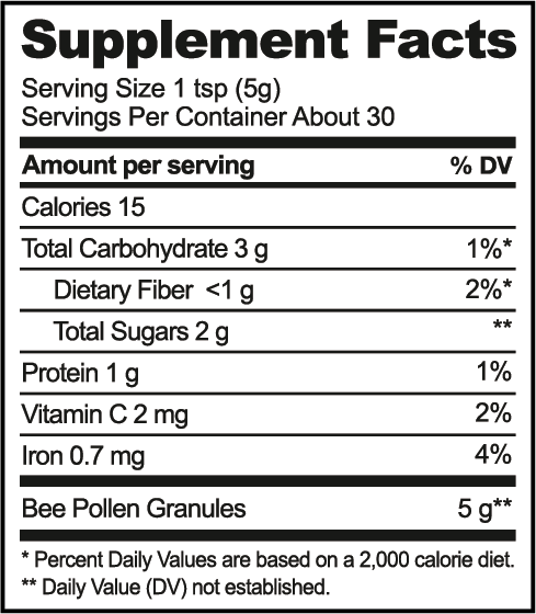 Nature’s multivitamin. A teaspoon of bee pollen delivers potent nutrients—like protein, iron, B vitamins, and copper—to energize and nourish your whole body.