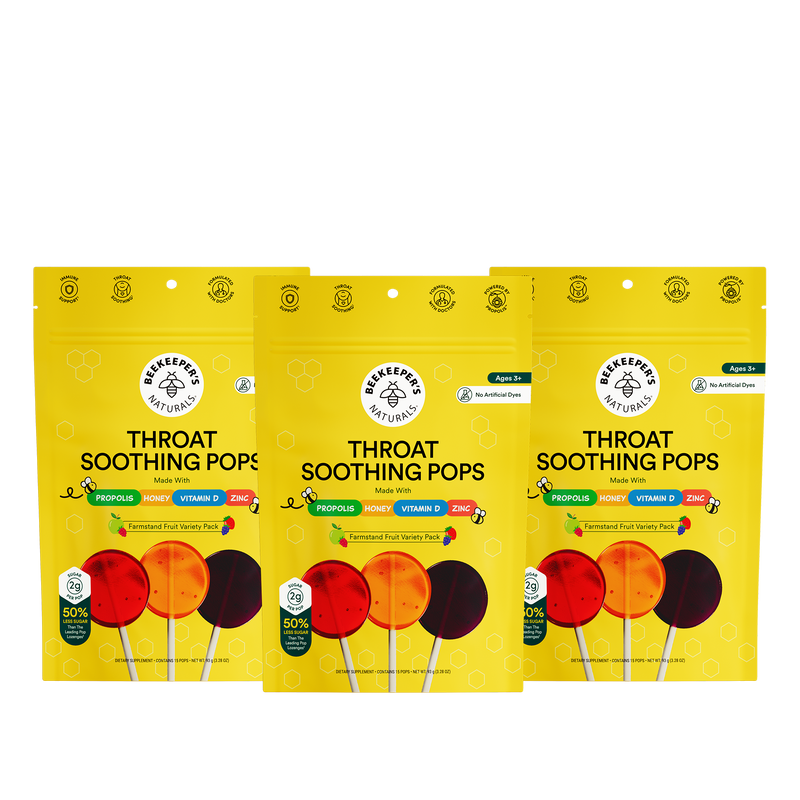 We’ve combined the immune-supporting power of propolis, vitamin D, and zinc into a delicious, kid-friendly lollipop with only 2g of sugar and no artificial dyes or flavors. Includes 3 flavors: strawberry, green apple, and mixed berry with elderberry.